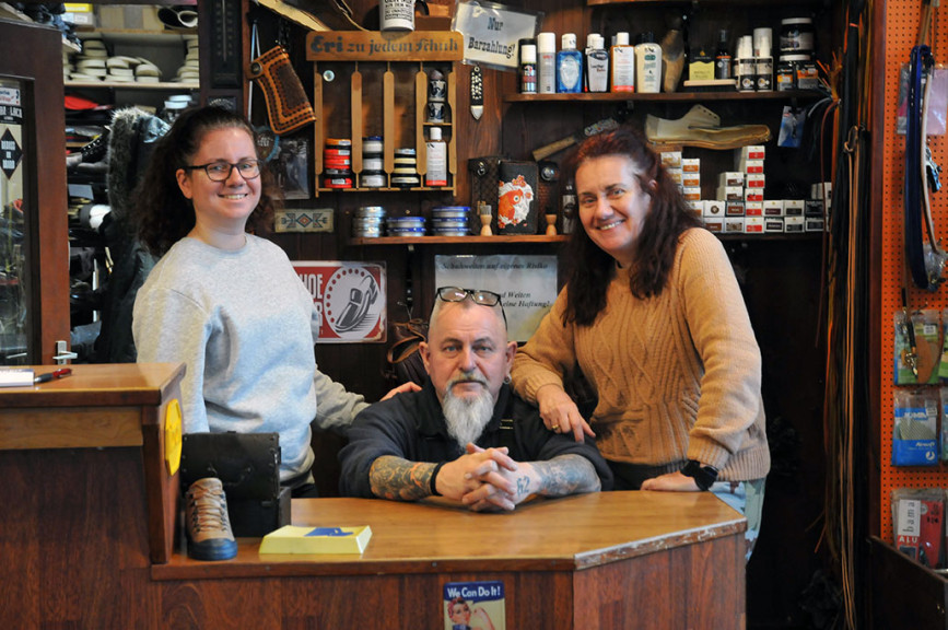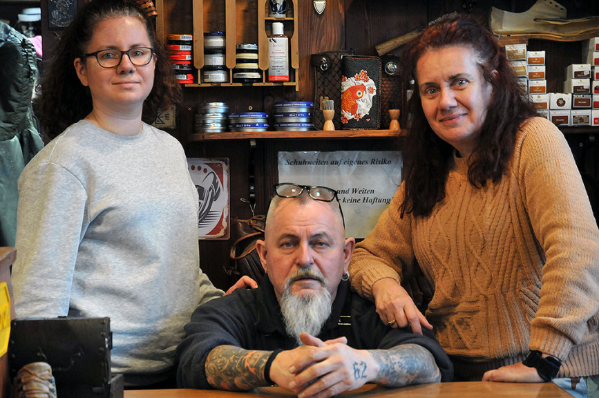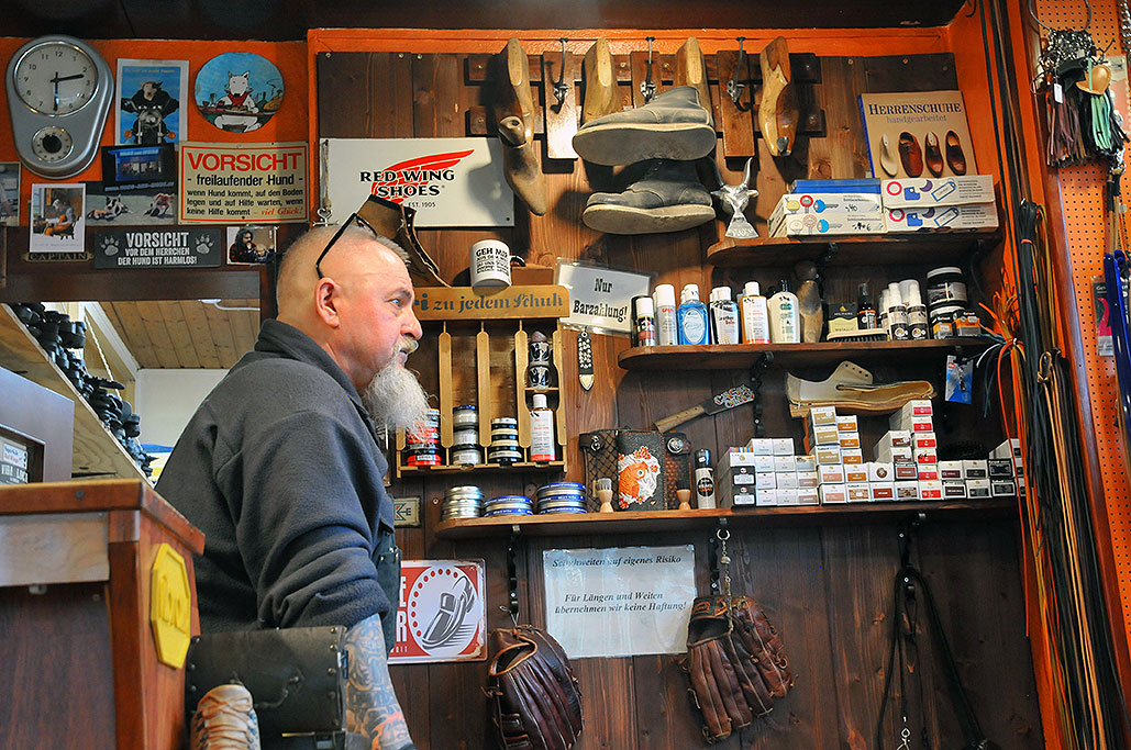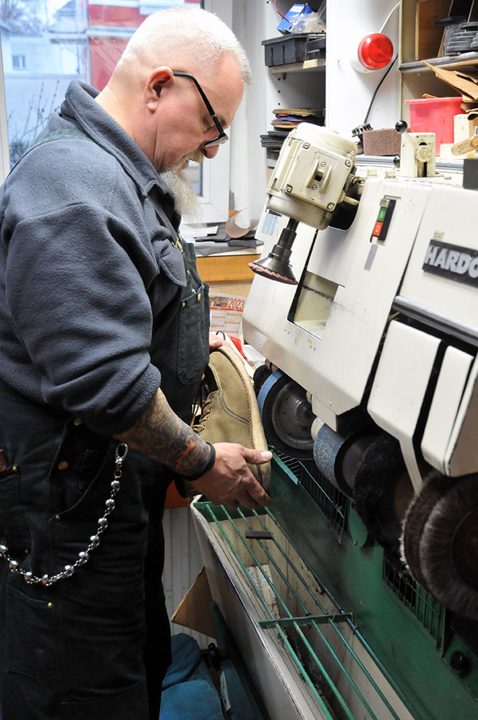 Werte erhalten durch Reparieren und Pflegen. Schuhe reparieren lohnt sich! Klein aber fein. Im Herzen von Frankfurt Preungesheim, in der Homburger Landstraße 67. Hier ist der Sitz des Familienunternehmens Schusterlädchens Lenz. Unsere Philosophie: Kunden, die mit Problemen zu uns kommen, werden schnell, fachgerecht und persönlich bedient. Gleich ob offene Nähte, Löcher im Fersenfutter, abgebrochene Absätze, durchgelaufene Schuhsohlen, ausgerissene Ösen und zu enge oder zu weite Schuhe. Auch komplizierte Schuhreparaturen sind für uns kein Problem von Alden, Buffalo, Dinkelacker, Lloyd, Lowa, Meindl, Red Wing bis zu diversen Sportschuhen. Das Handwerk und Spaß an der Arbeit wird bei uns großgeschrieben. Schauen Sie sich z.B. einmal unsere Lederarbeiten an. Dann wissen Sie warum!  Und sollte wirklich einmal die Haustüre hinter Ihnen zufallen. Rechnen Sie mit uns, wir helfen kompetent, schnell und zu fairen Preisen!