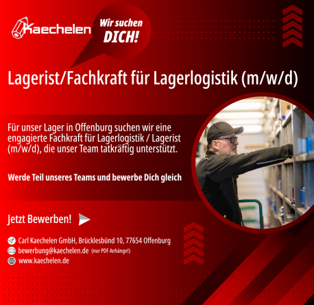 Für unser Lager in Offenburg suchen wir eine engagierte Fachkraft für Lagerlogistik / Lagerist (m/w/d), die unser Team tatkräftig unterstützt.